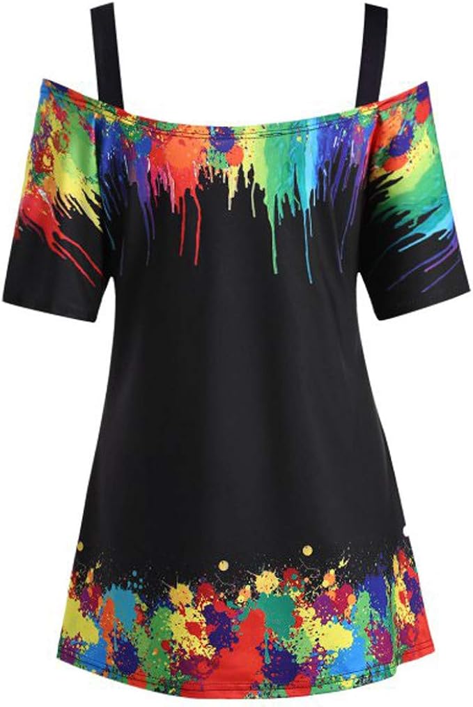 Amazon Com Kaifongfu Women Plus Size Tie Dye Cold Shoulder Blouse