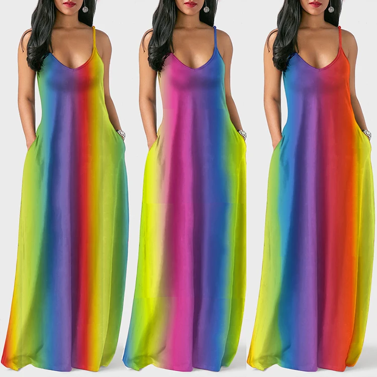 Rainbow Maxi Dress Amazon Com