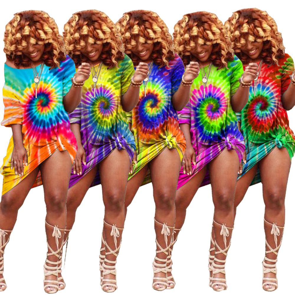 2020 Summer Plus Size Rainbow Tie Dye Dress Casual Women Clothing