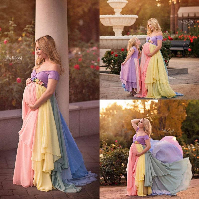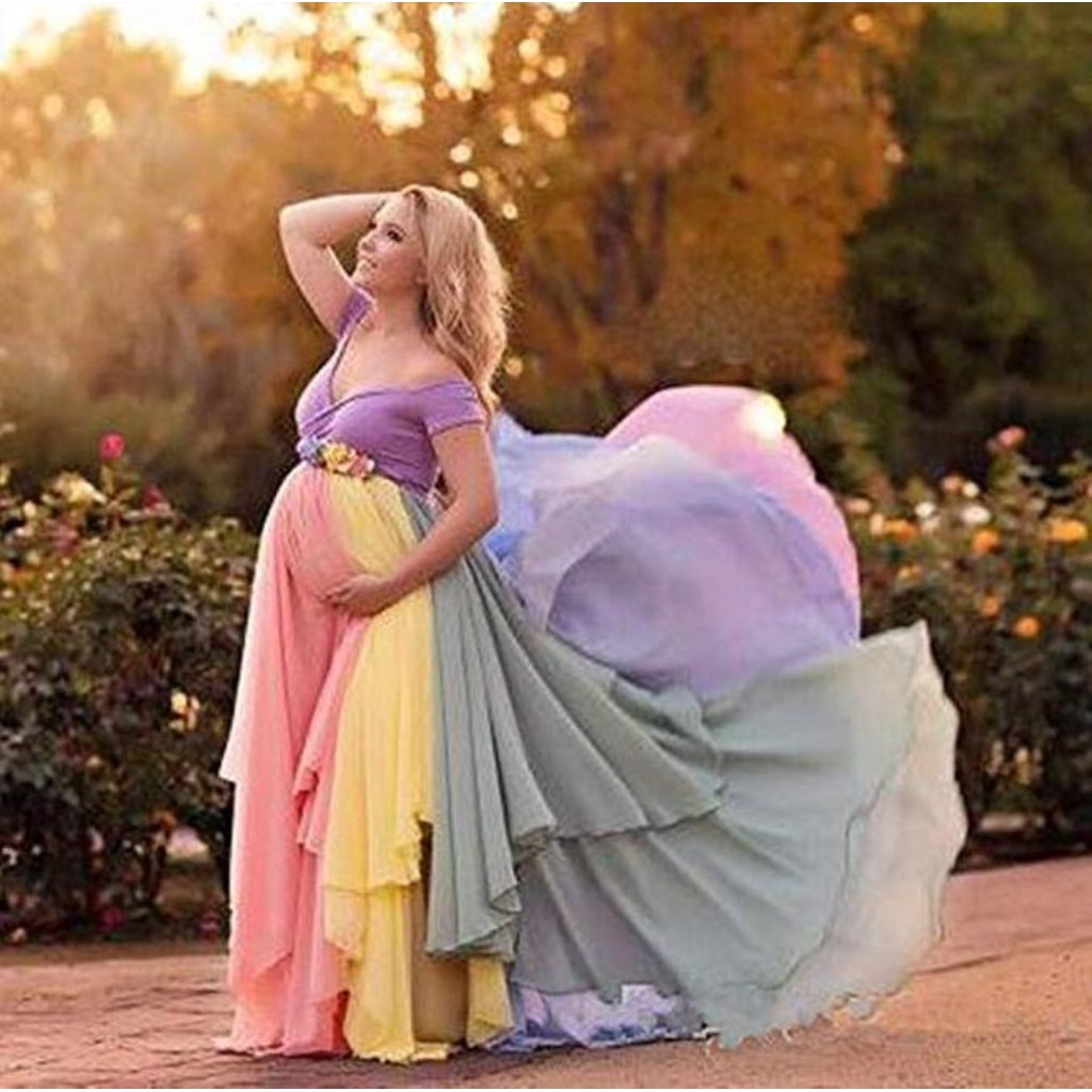 Rainbow Pregnant Evening Dress Plus Size Maternity Photography