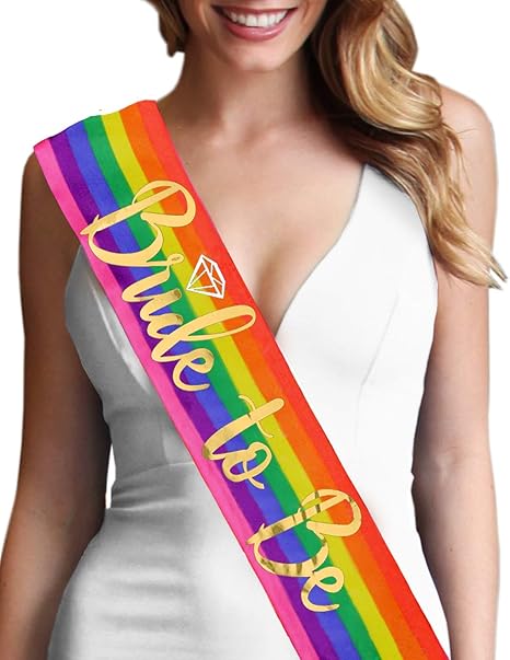 Amazon Com Rainbow Bride Gay Wedding Sash Metallic Gold Diamond
