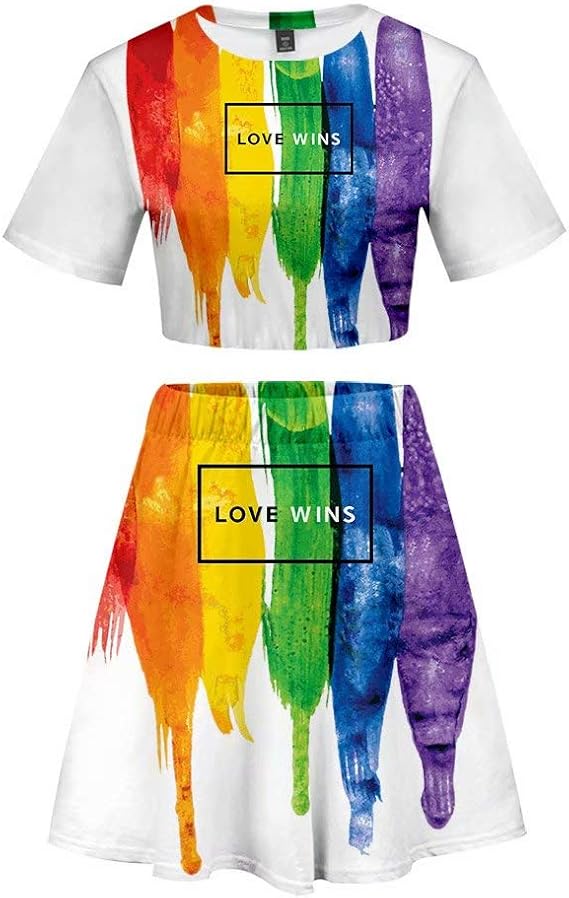 Jinyin Lesbian Rainbow Dress Gay Women S Rainbow Print Skirt Suit