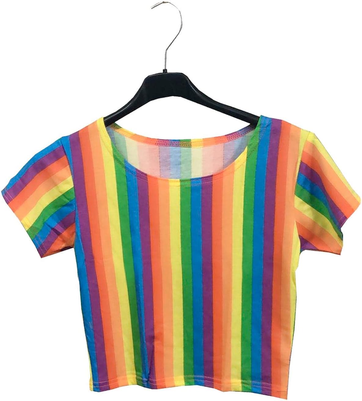 Islander Fashions Womens Rainbow Crop Top Ladies Short Sleeve Gay