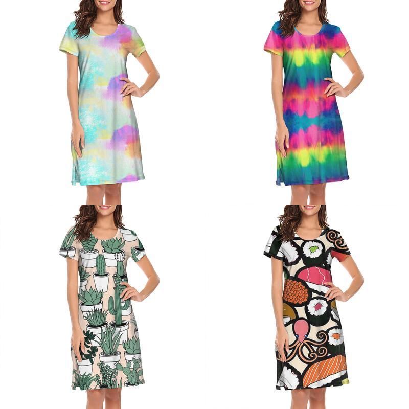 Gold Watercolor And Nebula Mandala 2019 Summer Dress Women Print