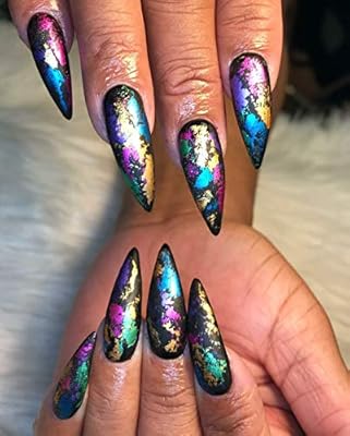Amazon Com Rainbow Iridescent False Fake Nails Tips Colorful