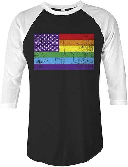 Men S Rainbow American Flag Raglan Baseball T Shirt Lgbt Gay Pride