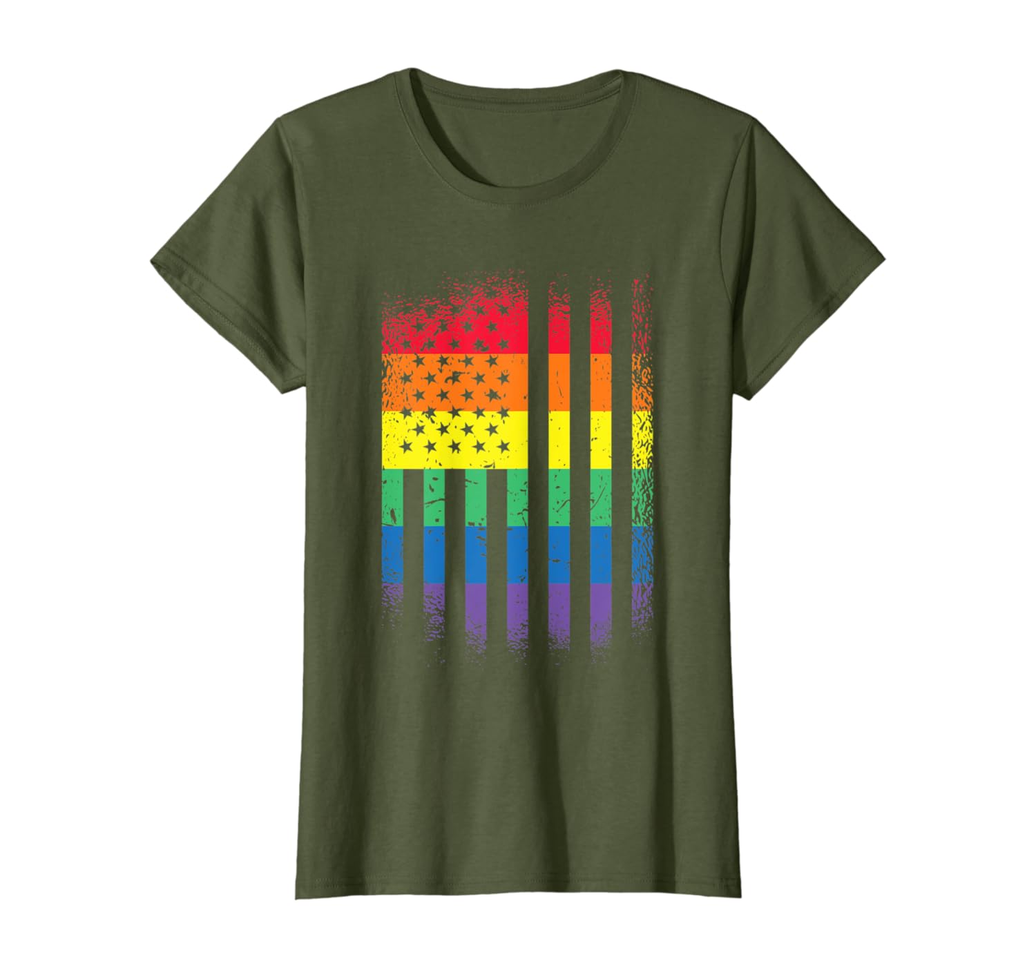 Rainbow American Flag Gay Lesbian Lgbt Pride Womens T Shirt Ebay