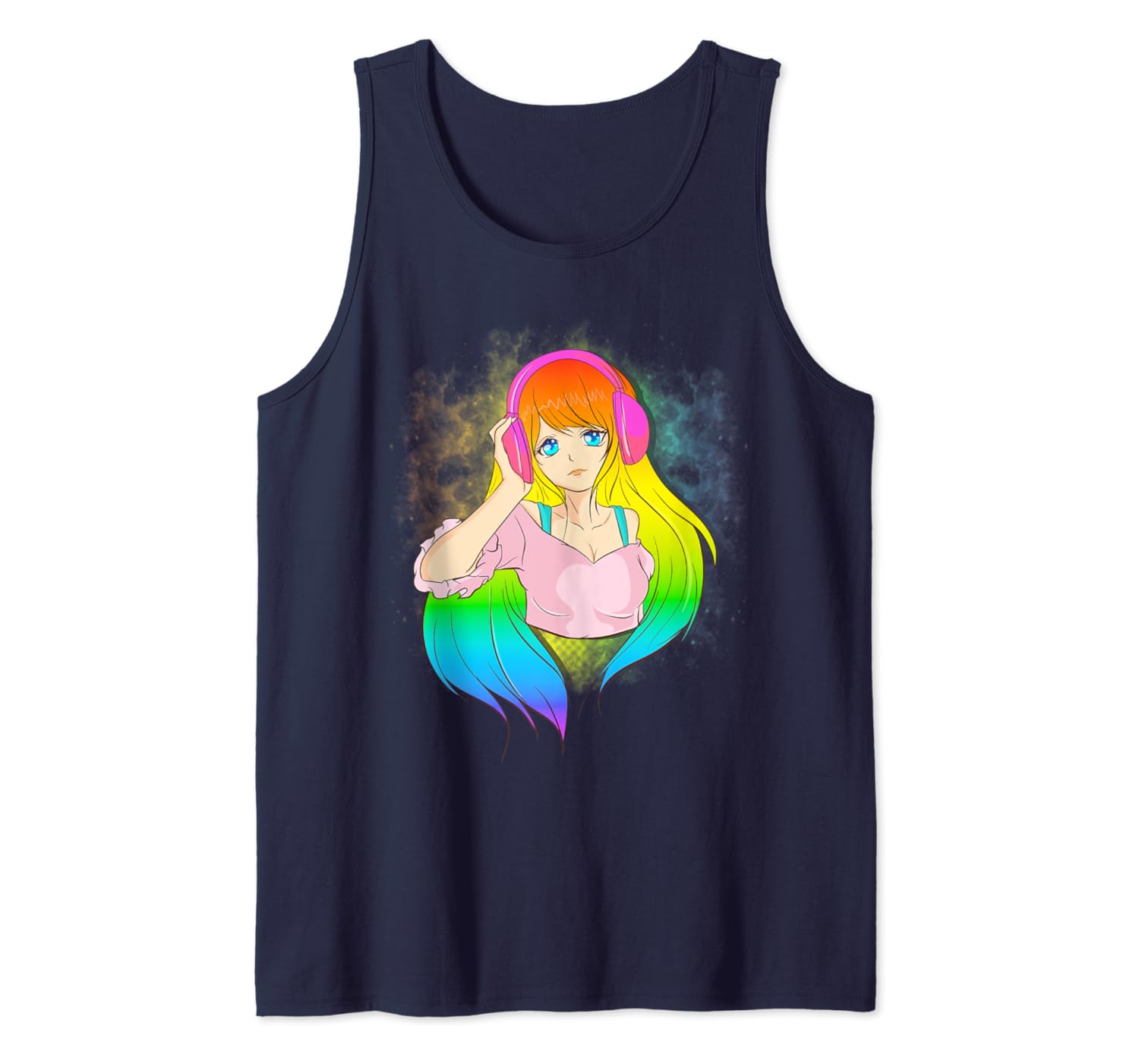 Amazon Com Japanese Anime Girl Headphones Rainbow Punk Kawaii Manga Tank Top Clothing
