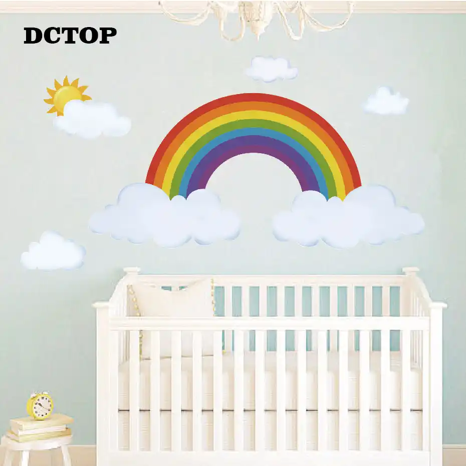 Nursery Rainbow Wall Stickers Sun And Cloud Decals On The Wall For