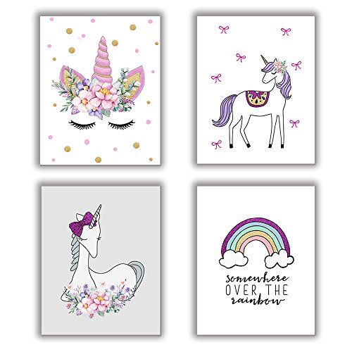 Home Play Unicorn Art Print Set Of 4 10 X8 Rainbow Art Painting