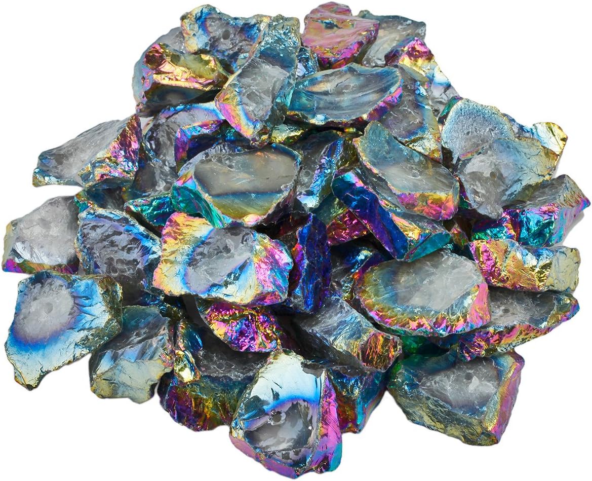 Beskhk Rainbow Aura Titanium Coated Crystal Points Quartz Rough