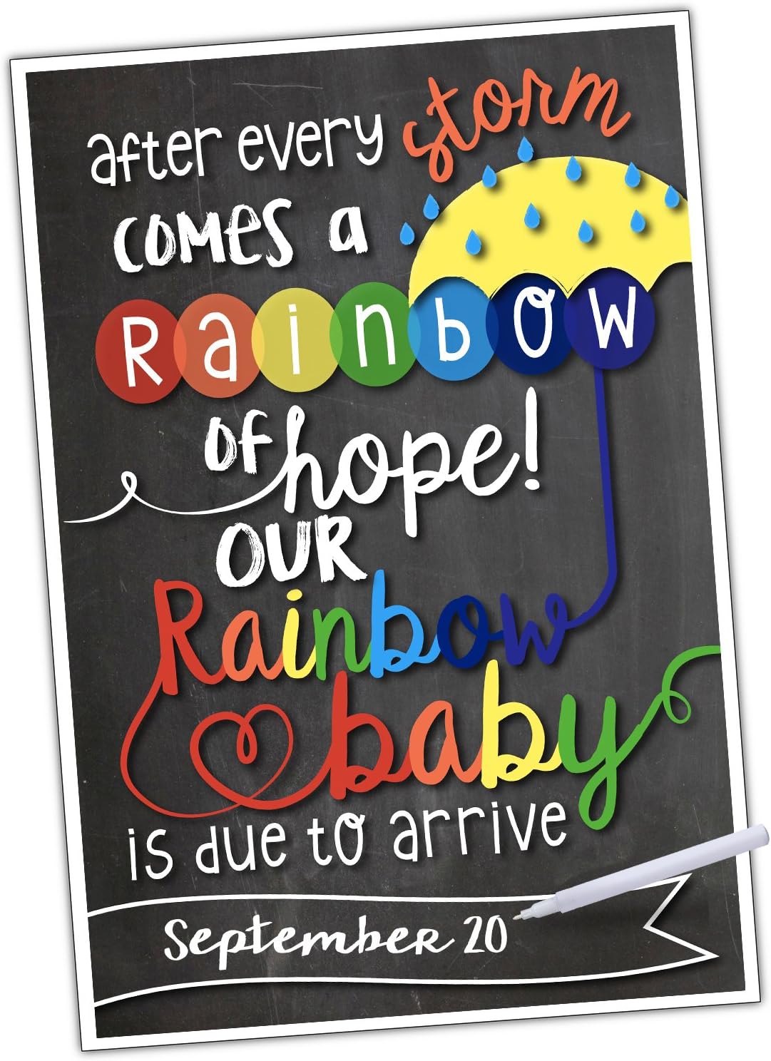 Pregnancy Rainbow Baby Announcement Print Chalkboard Style