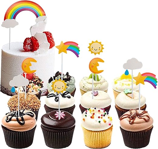 Crley 10sets 40pcs Cake Topper Flag Rainbow Sun Moon Cloud Birthday Baby Shower Cupcake Toppers Party Favor Decoration Supplies Cake Decorating Supplies Aliexpress