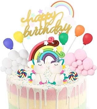 Izoel Unicorn Cake Topper Kit Cloud Rainbow Balloon Happy Birthday