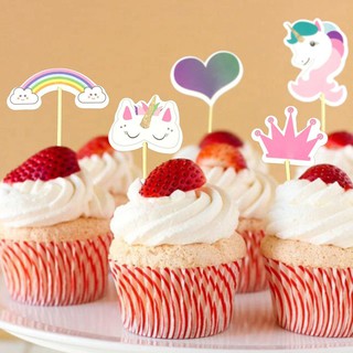 24pcs Unicorn Rainbow Birthday Cupcake Decor Kids Festival Party
