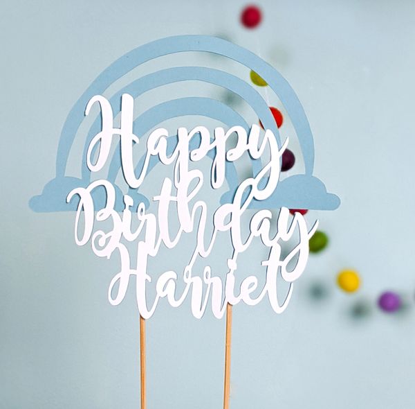 Personalised Rainbow Birthday Banner Cake Topper Decoration Any