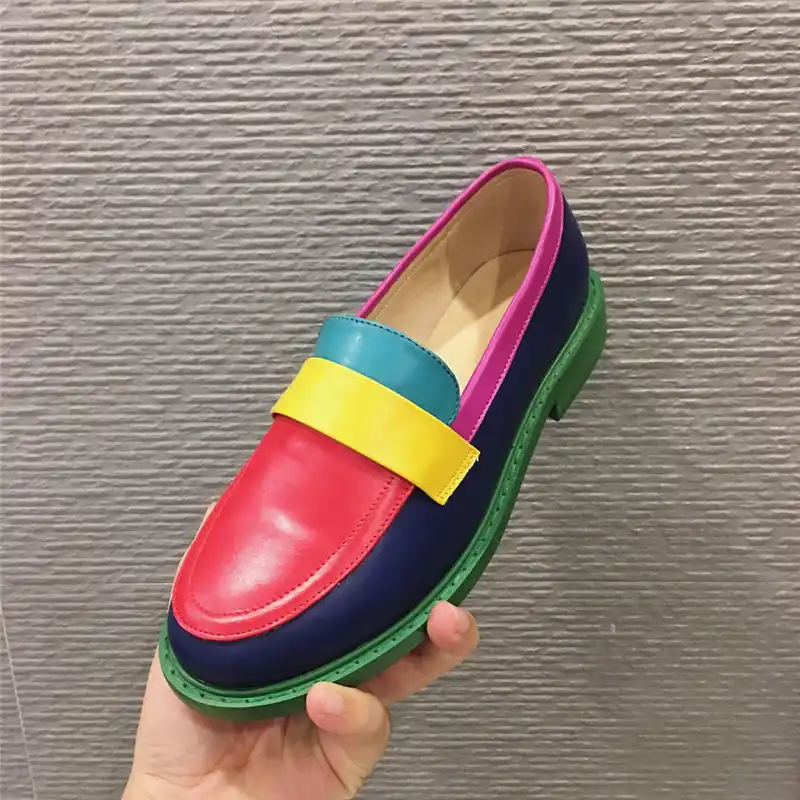 Socofy Women S Rainbow Color Genuine Leather Shoes Casual Loafers