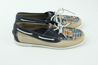 Ll Bean Rainbow Plaid Women S Leather And Canvas Boat Shoes Size