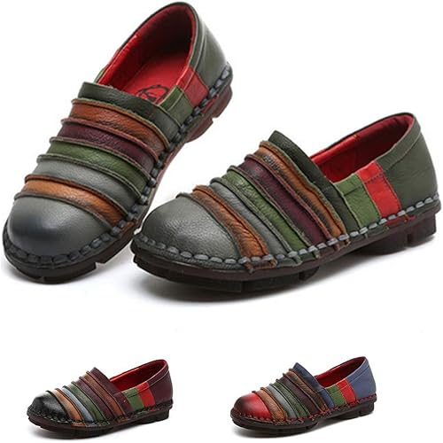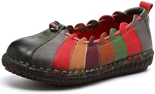 Socofy Slip On Loafer Flat Shoes Women S Rainbow Leather Casual