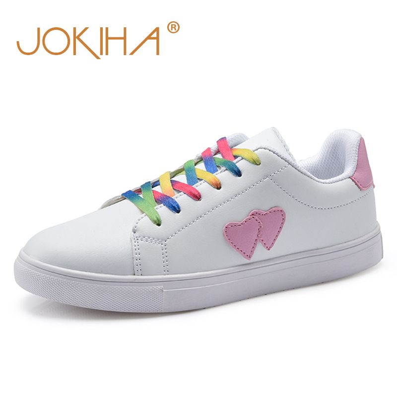 Jokiha Fashion Flats Shoes Woman Pu Leather Women Rainbow Lace
