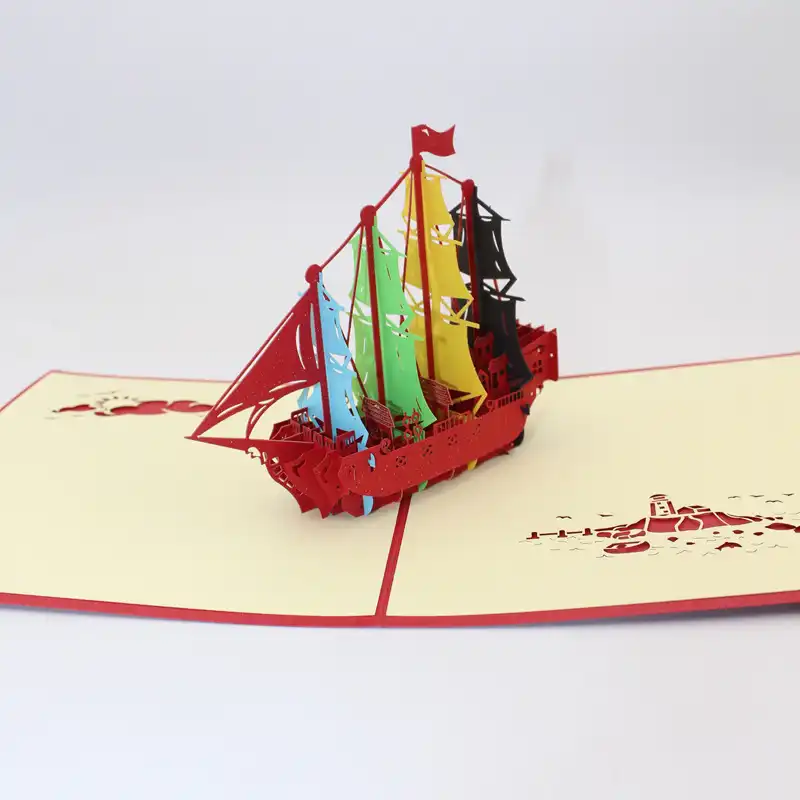 New Design 3d Handmade Rainbow Color Flag Sailing Ship Boat Paper