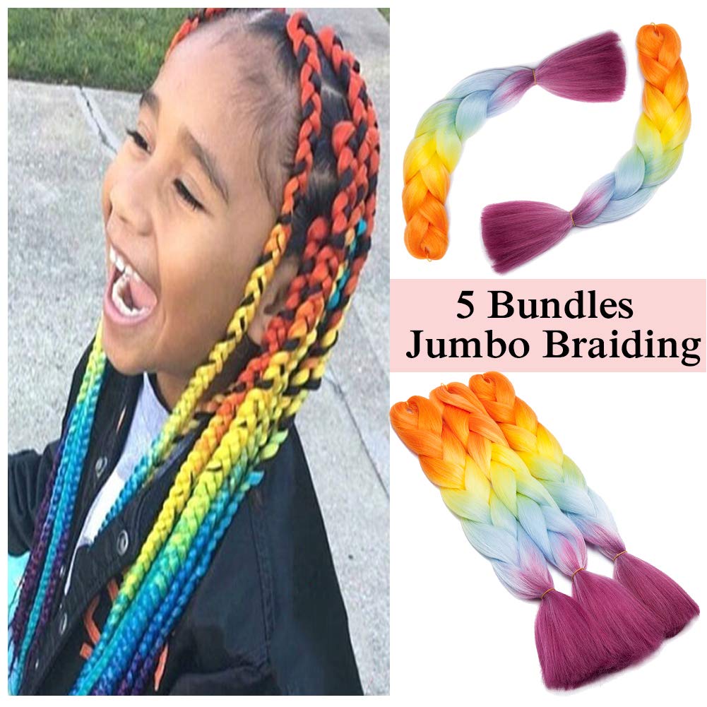 Amazon Com 4pcs Lot Kanekalon Braiding Hair Rainbow Jumbo