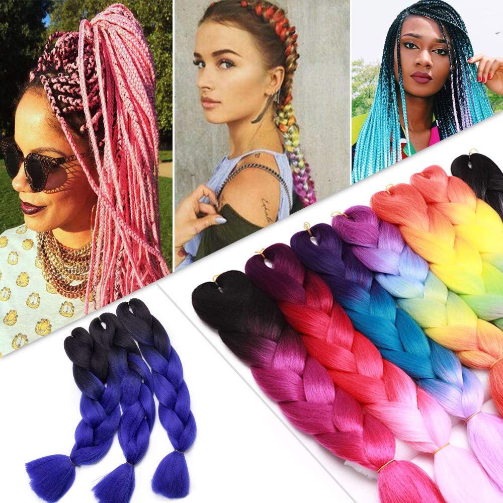 Ombre Rainbow Box Braids Crochet Plaited Kanekalon Jumbo Braiding