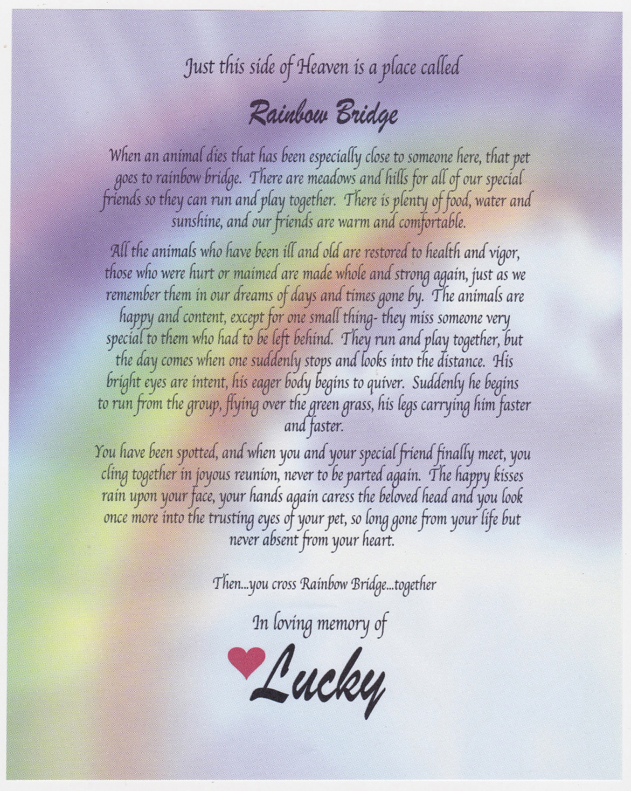 Personalised Rainbow Bridge Pet Loss Poems For Dogs And Cats
