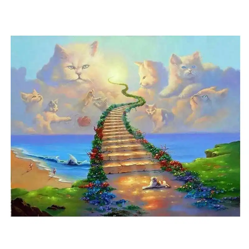 5d Needlework Diy Diamond Painting Cat Dog Heaven Rainbow Bridge