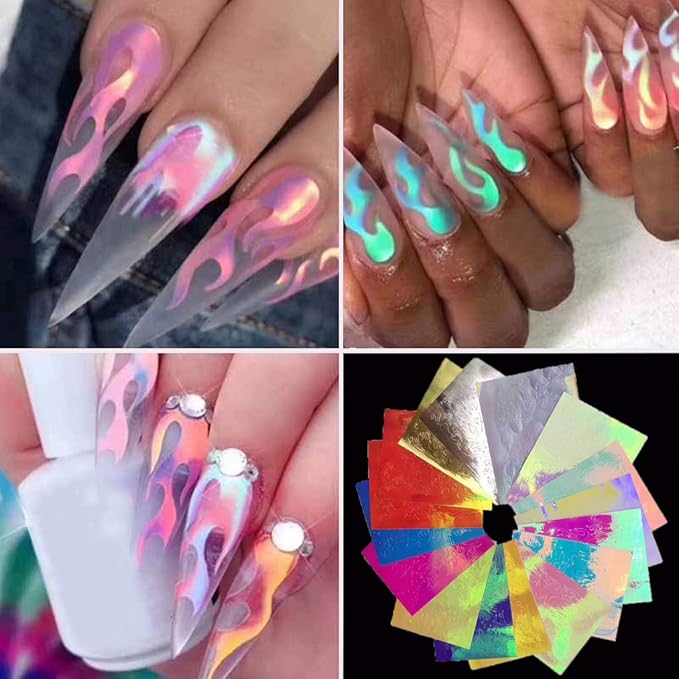 Amazon Com Flame Reflections Nail Stickers 16pcs Holographic