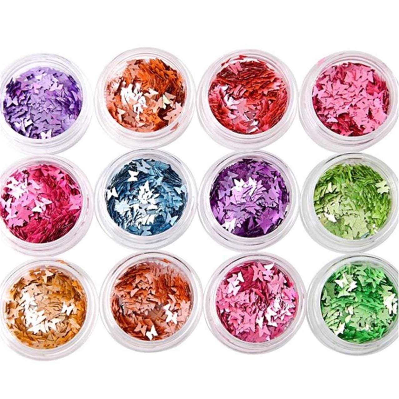 Amazon Com 12 Pcs Mini Butterfly Sequins Nails Glitter Colorful