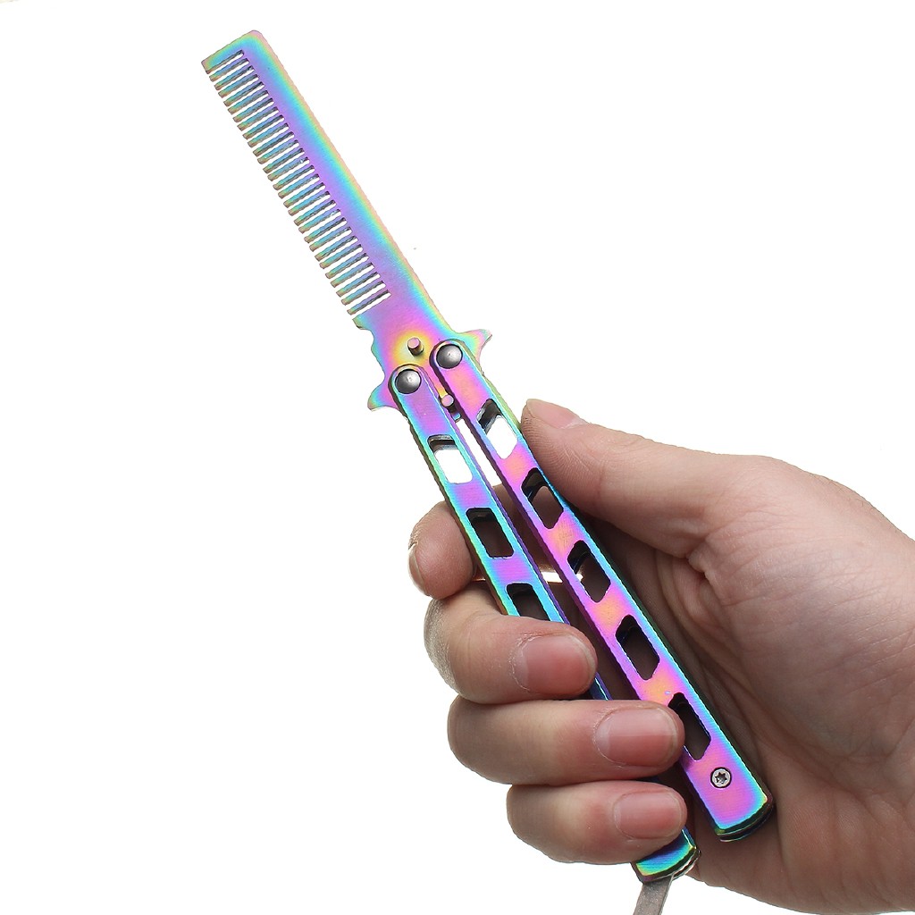 Rainbow Foldable Comb Stainless Steel Practice Training Butterfly Knife Comb Beard Moustache Brushes Hairdressing Styling Tool Lazada