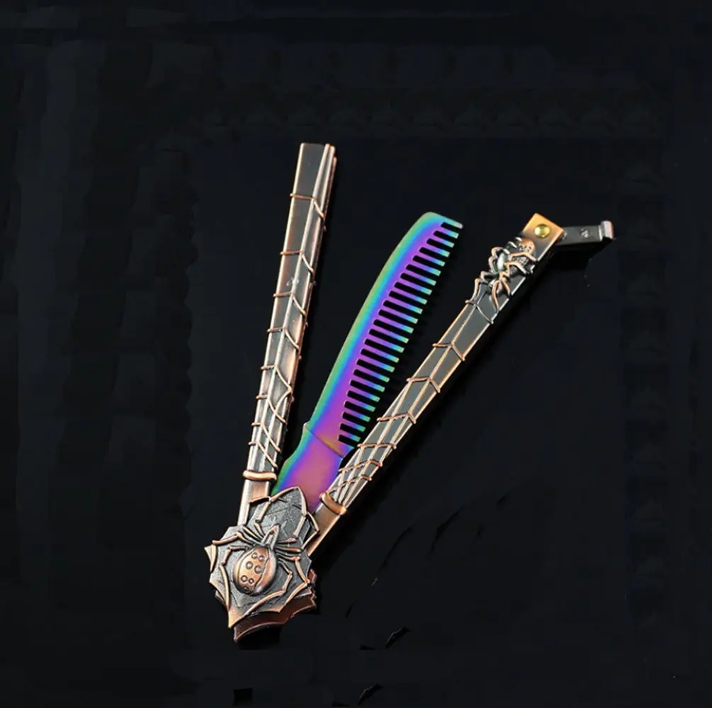 High Quality Spider Butterfly Comb Folding Blade Pocket Comb Tactical Training Balisong Practice Tool Car Travel Accessories Butterfly Knife Pocket Comb