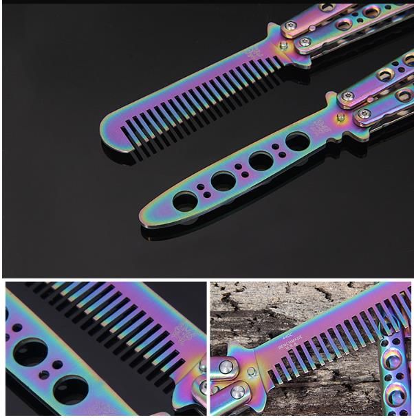 Rainbow Foldable Comb Stainless Steel Practice Training Butterfly Knife Comb Beard Moustache Brushes Hairdressing Styling Tool Combs Aliexpress