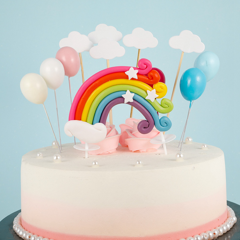 Cake Decoration Birthday Rainbow Balloons Clouds Cake Topper Cake