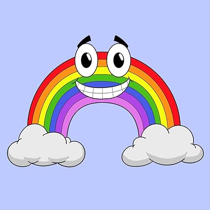 Cartoon Rainbow With Funny Clouds Background Clouds And Sky
