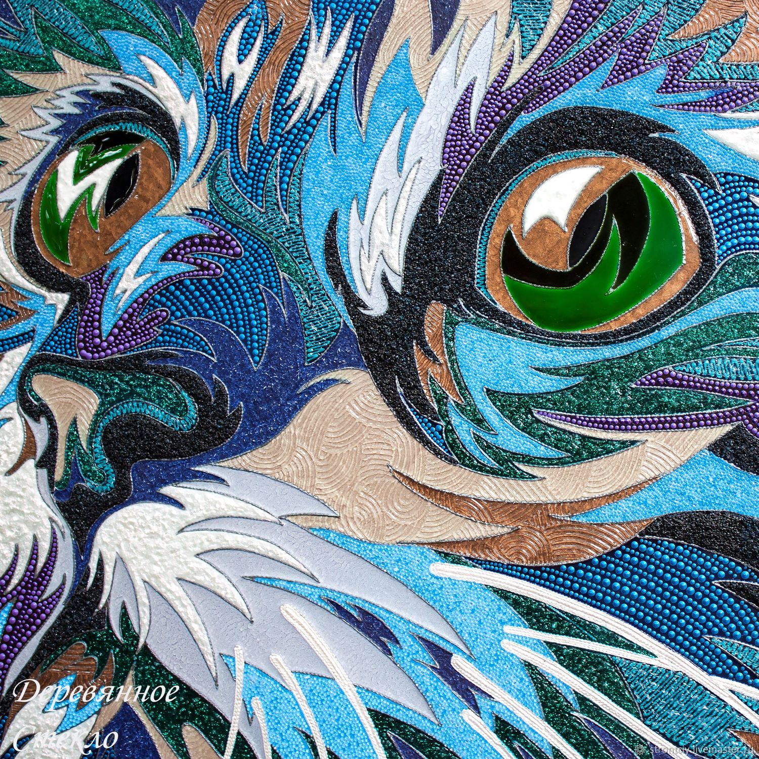 Rainbow Cat Stained Glass Painting On Glass With A Cat A Cat