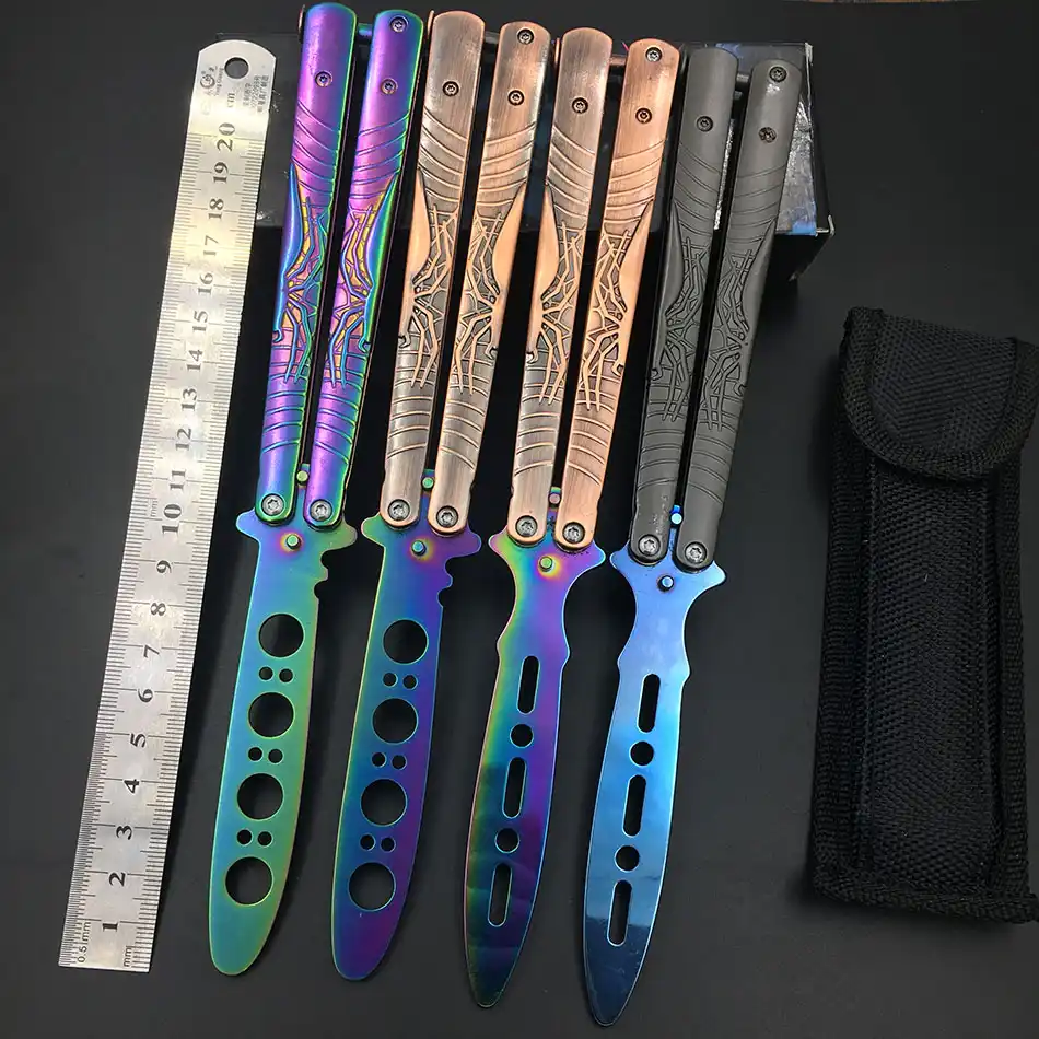 Csgo Practice Butterfly Balisong Trainer Tactical Knife Rainbow
