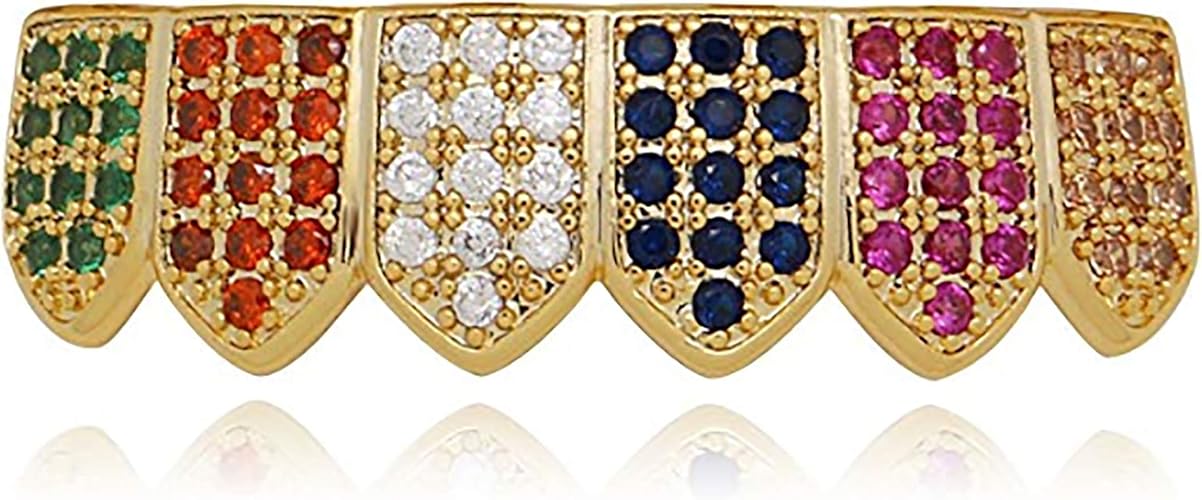 Hip Hop Gold Silver Rainbow Teeth Grillz Top Bottom Colorful