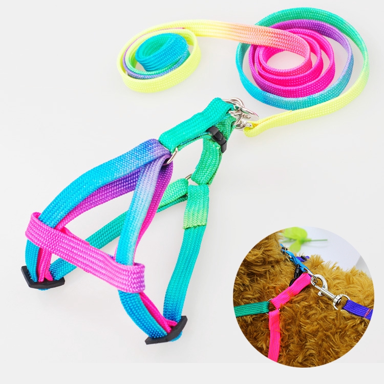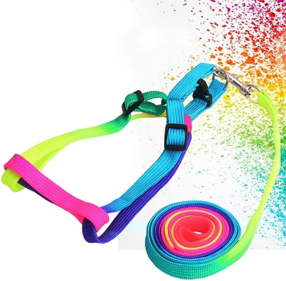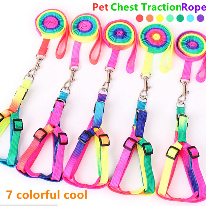 1 Pcs Adjustable Rainbow Color Pet Dog Leash Harness Collar Lead
