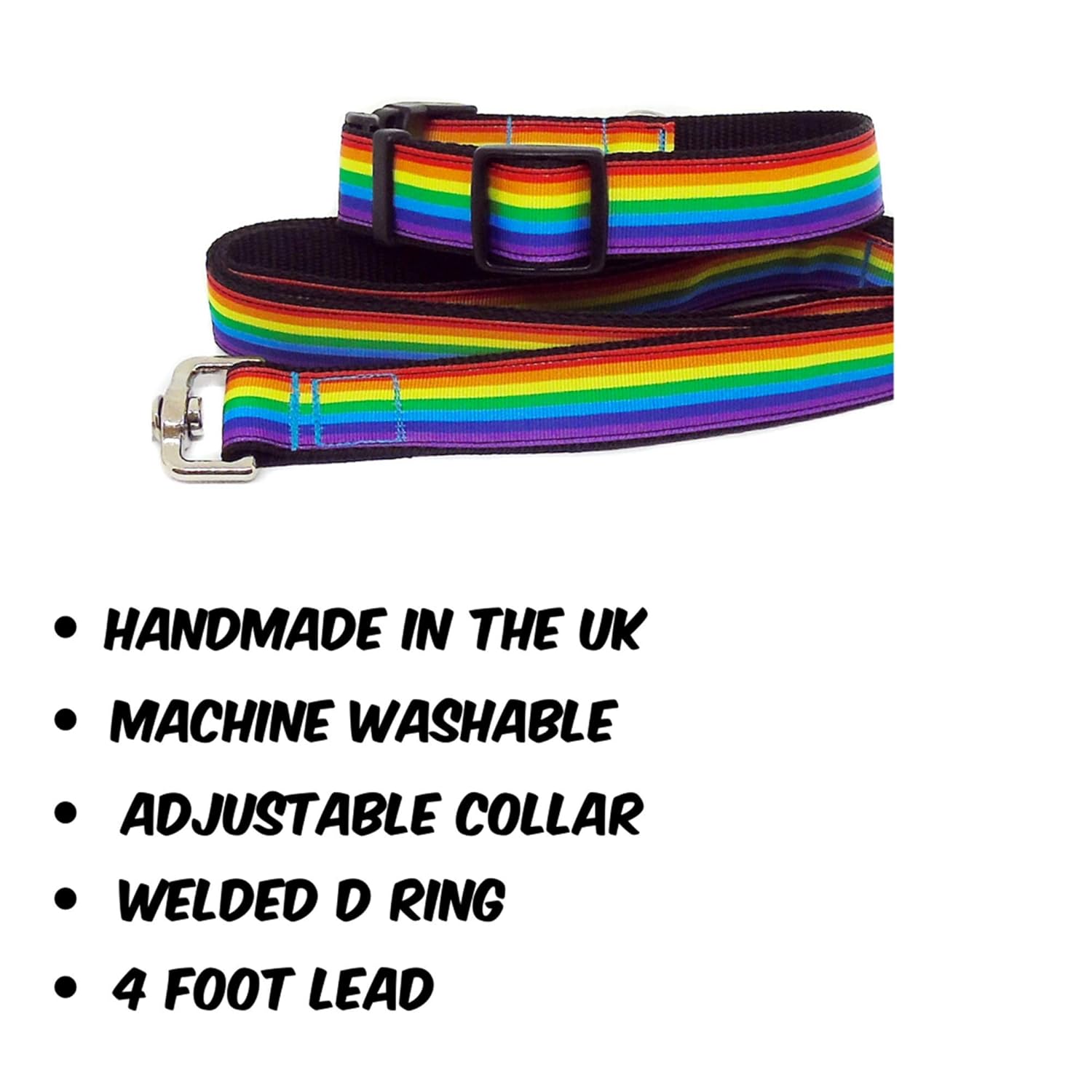 Handmade Pride Rainbow Dog Lead And Collar Combination