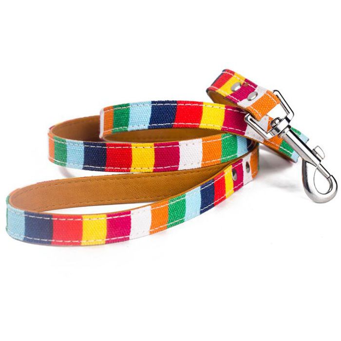 2020 Soft Canvas Cloth Pu Leather Material Rainbow Dog Lead