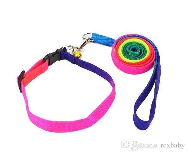 2020 Rainbow Dog Cat Bell Collar And Leash Adjustable Outdoor