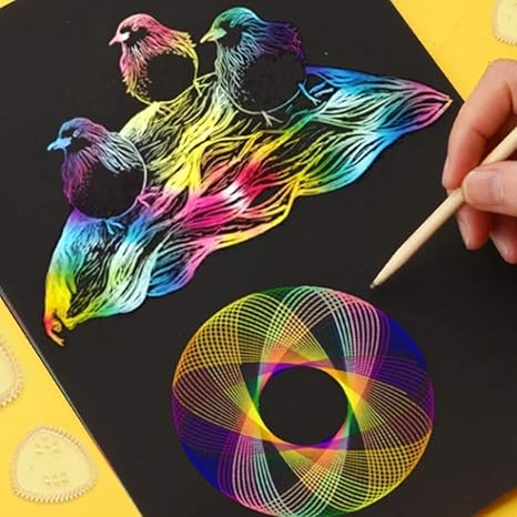 Magic Ruler Drawing Scratch Art For Kids Sheets Rainbow Scratch Paper Arts Black Magic Scratch Art Notes Paper Boards With 5 Wooden Stylus And 4 Drawing Rulers And