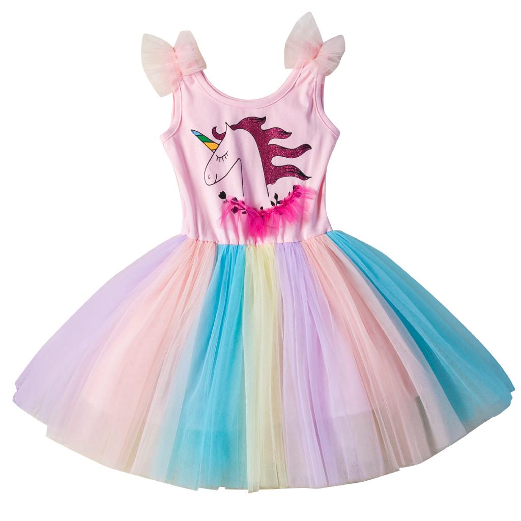 Girls Rainbow Unicorn Tutu Dress Cute Princess Fancy Dress