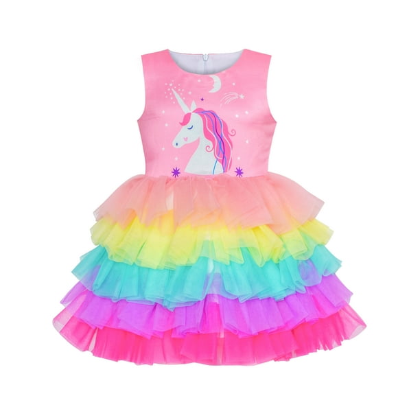 Girls Dress Unicorn Rainbow Halloween Costume Princess Sunny Fashion