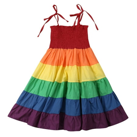 Calsunbaby Toddler Baby Girl Rainbow Sling Dress Kids Loose