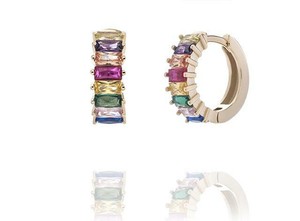 Rainbow Baguette Hoop Earrings Yellow Gold Voare