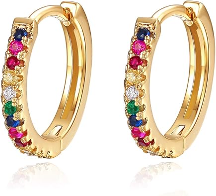 Amazon Com Finefey Rainbow Cubic Zirconia Huggie Earrings 18k