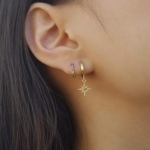 Amazon Com Rainbow Earrings Star Huggie Hoops Celestial Drop